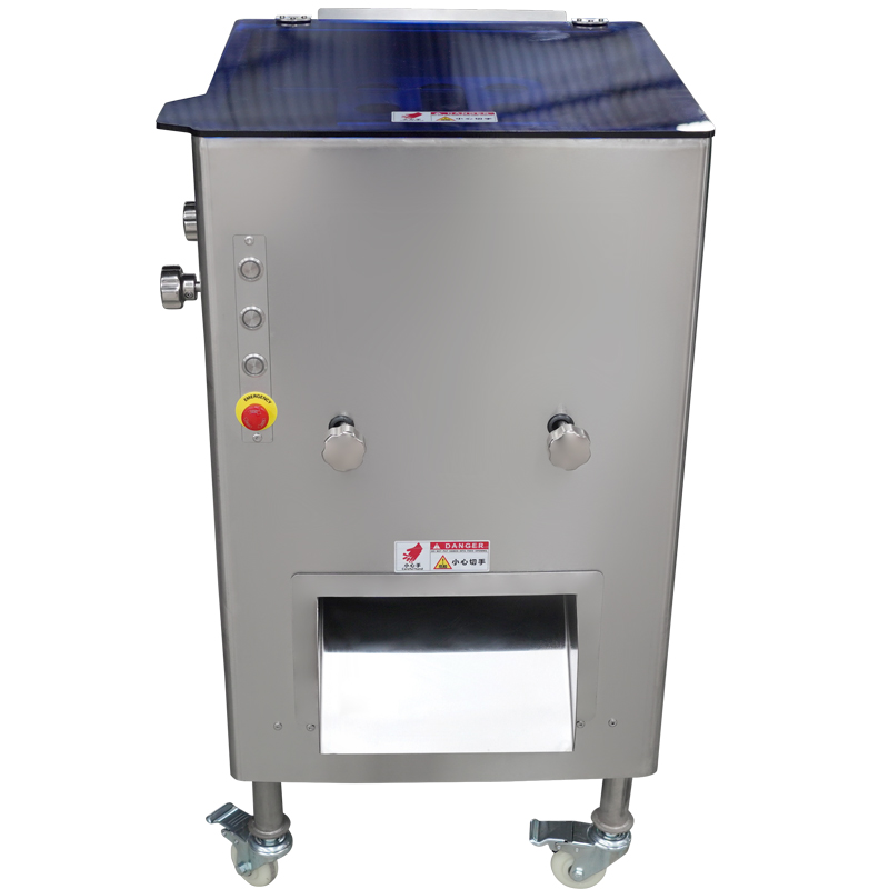 本公司生產(chǎn)的切肉絲肉片機,機身整體都采用了304不銹鋼進(jìn)行制作,鋼板的厚度可達到3mm,底部配備萬(wàn)向輪方便移動(dòng)固定。